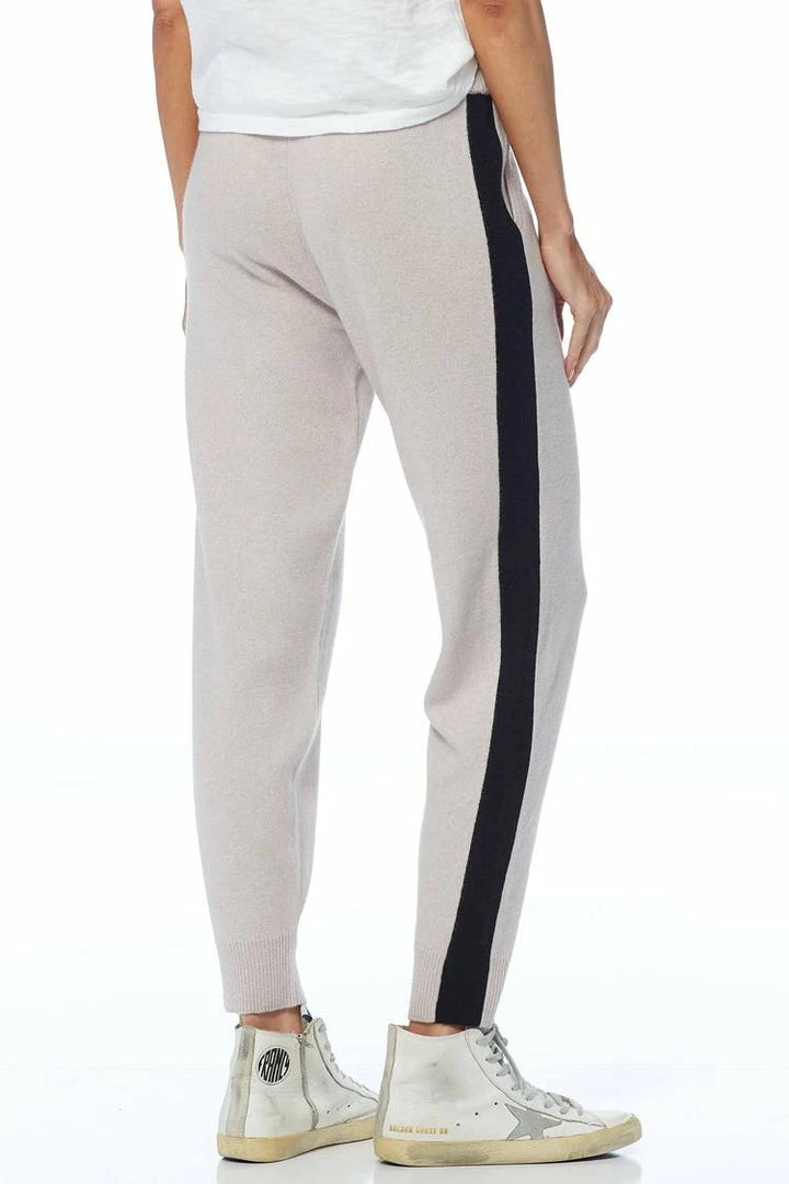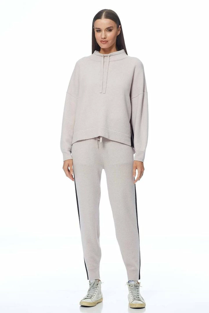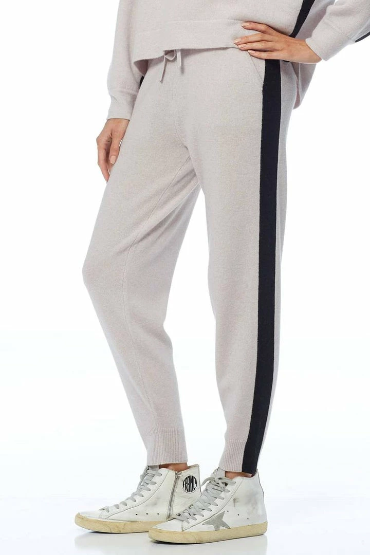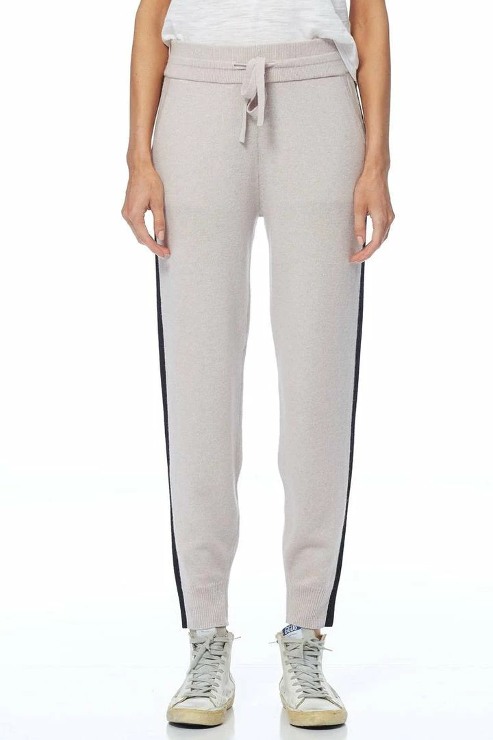 Athleisure wear has never looked so good. Sporty stripes accent the comfy and cool Sofie cashmere tapered leg pant. Elasticated drawstring waist and discrete pockets. Pair with matching McKinley Pullover.