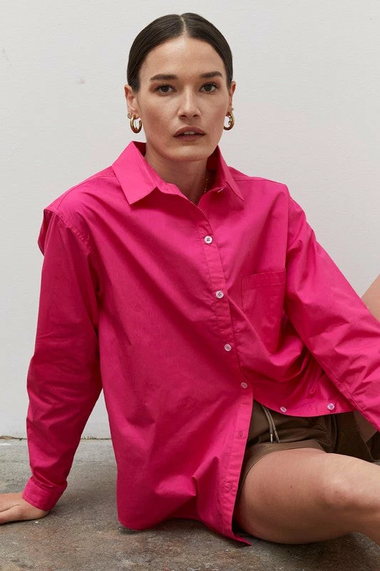 Our LOVED shirt is made of a crisp cotton poplin. Designed in a relaxed shape, it has a button-down collar, and two chest patch pockets. Wear yours with jeans, shorts or a bathing suit! Leave a few buttons undone at the neck for a more laid-back take.