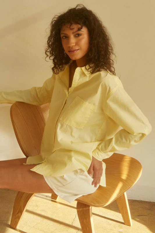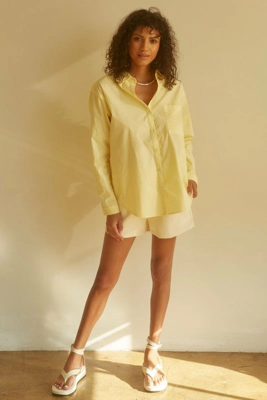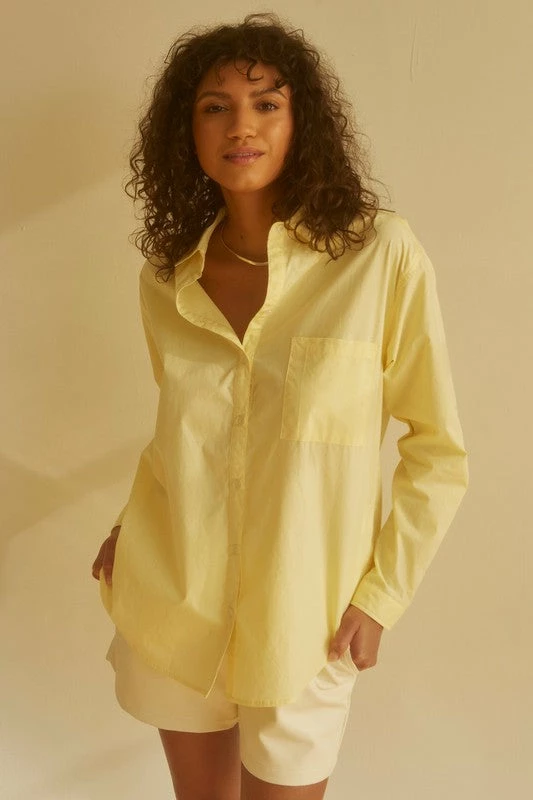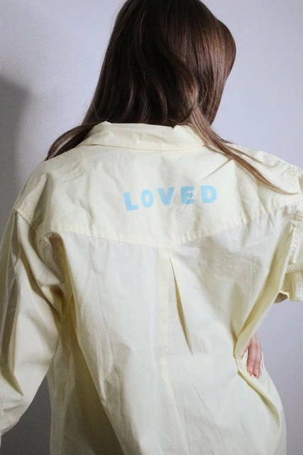 Our LOVED shirt is made of a crisp cotton poplin. Designed in a relaxed shape, it has a button-down collar, and two chest patch pockets. Wear yours with jeans, shorts or a bathing suit! Leave a few buttons undone at the neck for a more laid-back take.
