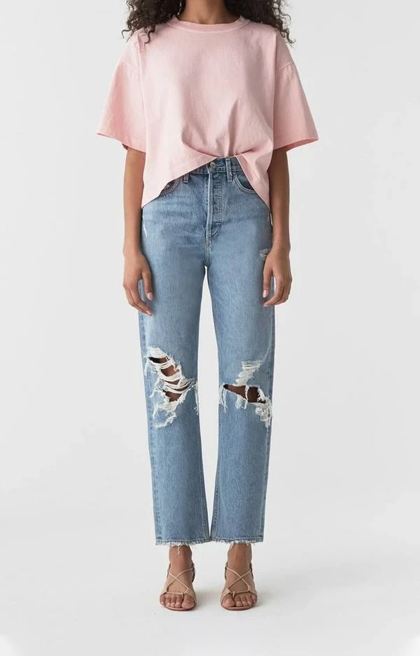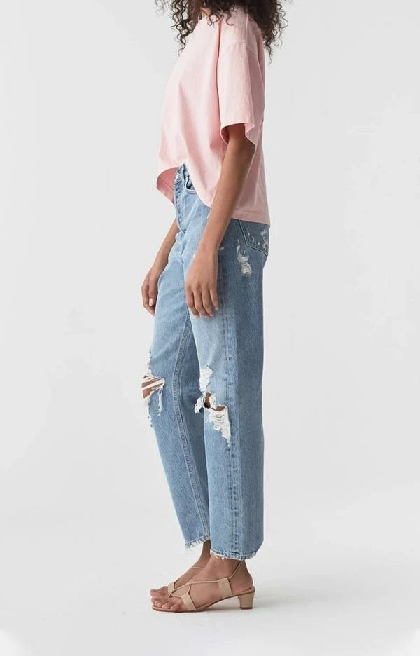 Throw it back in this favorite mid rise fit. Inspired by oversized anti-fit references of the 90’s, this jean features a straight outseam and eased up leg silhouette.