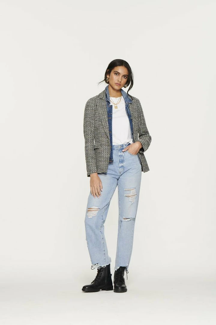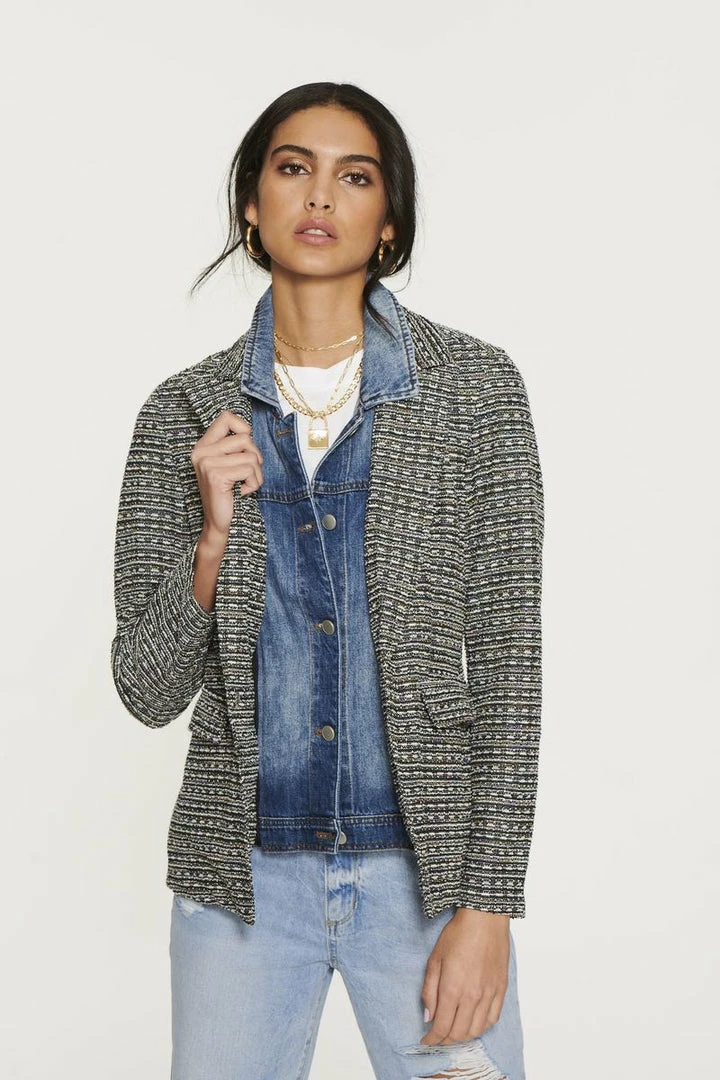 Helen Black & Rainbow Tweed Blazer With Removable Denim Insert