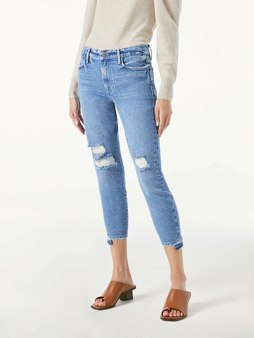 We updated our best-selling high-rise cropped skinny jeans for spring 2021 with a staggered and released hem for an undone feel. Designed to sit at the small of the waist with a form-fitting shape, this jean is a versatile style with season staples from knitwear to tops.Â