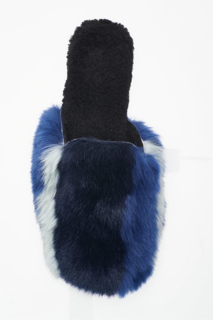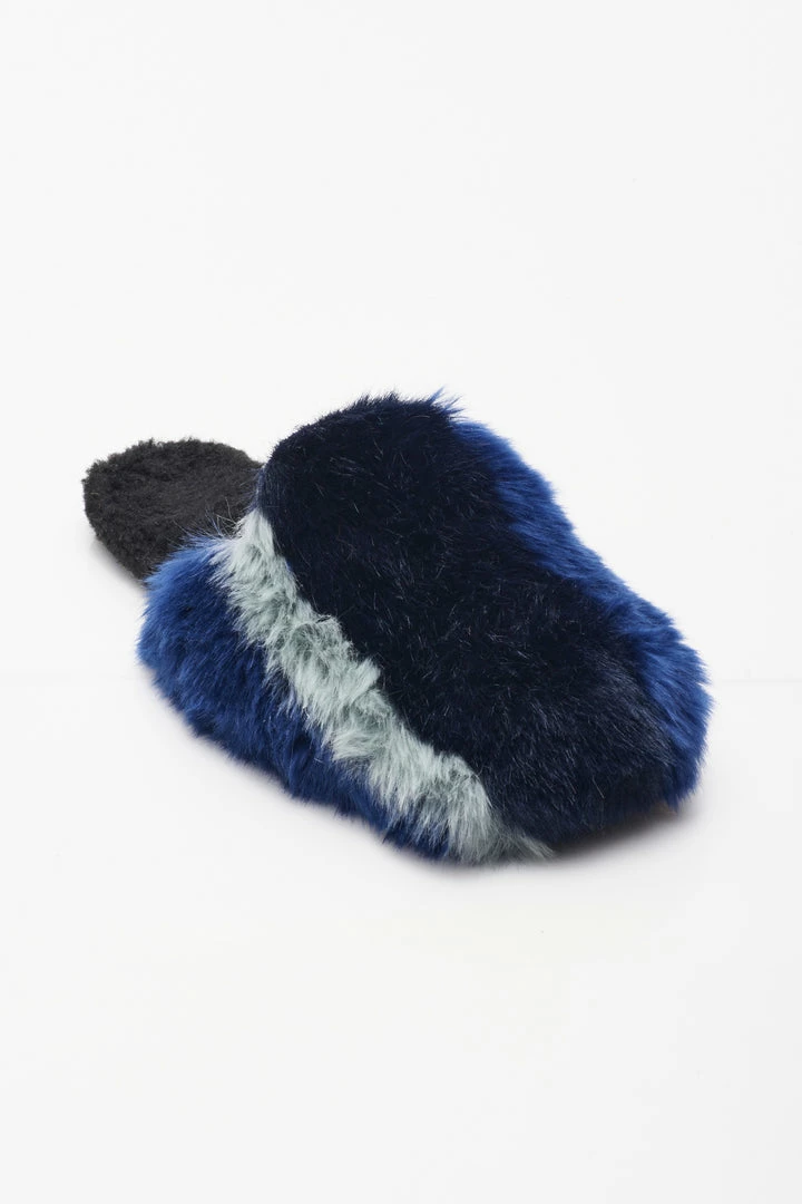 Slip into these dreamy slides featured in a backless design and flat-sole style with multicolored faux fur, a cushioned insole, and round toe.