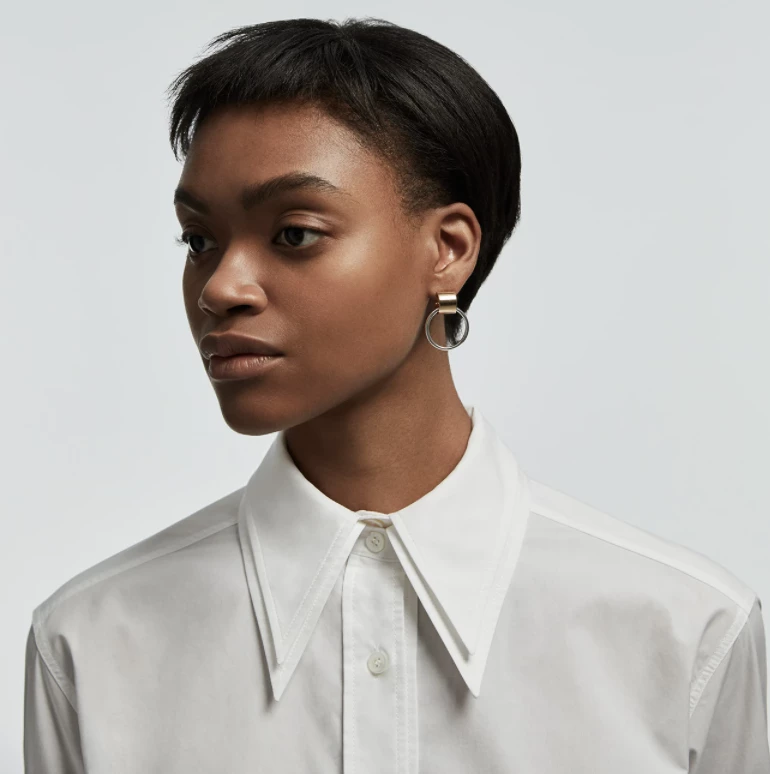 A lightweight hoop swings from a high polish earring huggie. Your essential for everyday.14K gold-dipped brass