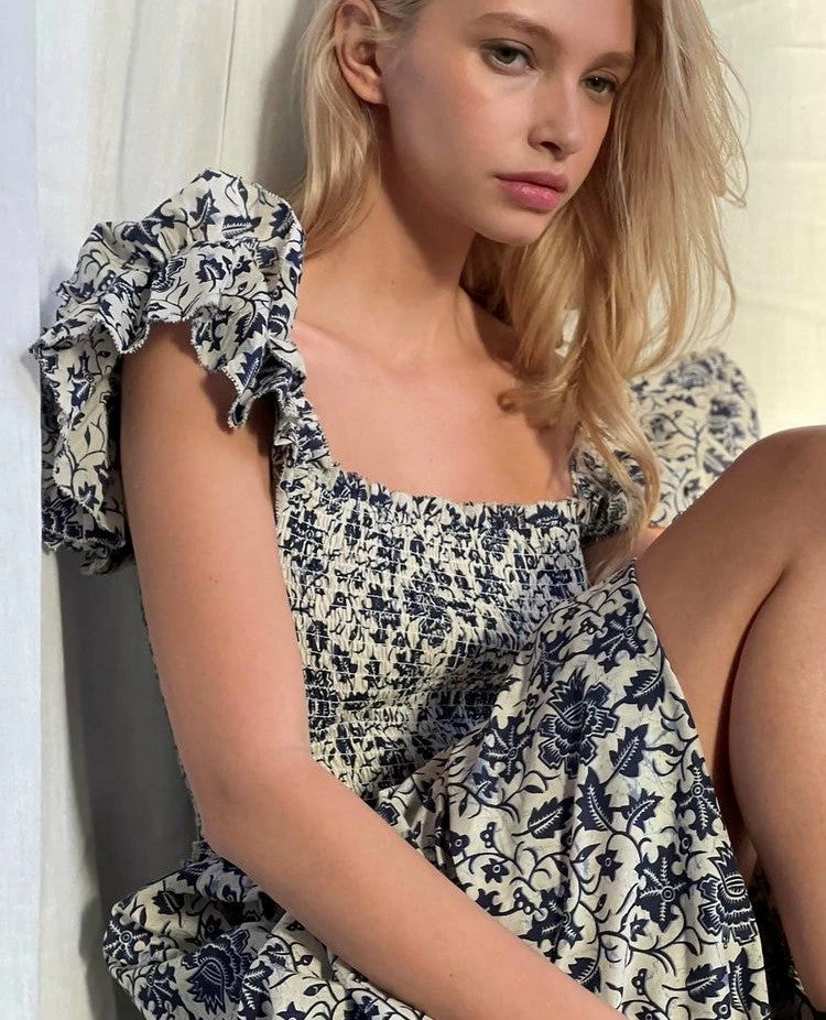 The Isla dressĀ features soft ruffle sleeves and tie-waist to accentuate your figure. In our beautiful Chloe print. A go-to Summer staple.