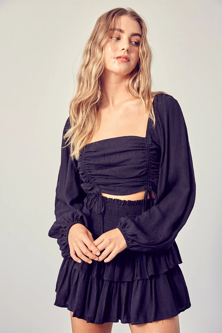 Olive & Bette’s Accessories Olive And Bette’s – Jacquared Ruched Long Sleeve Top – Black