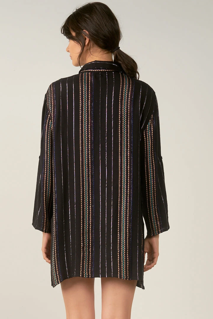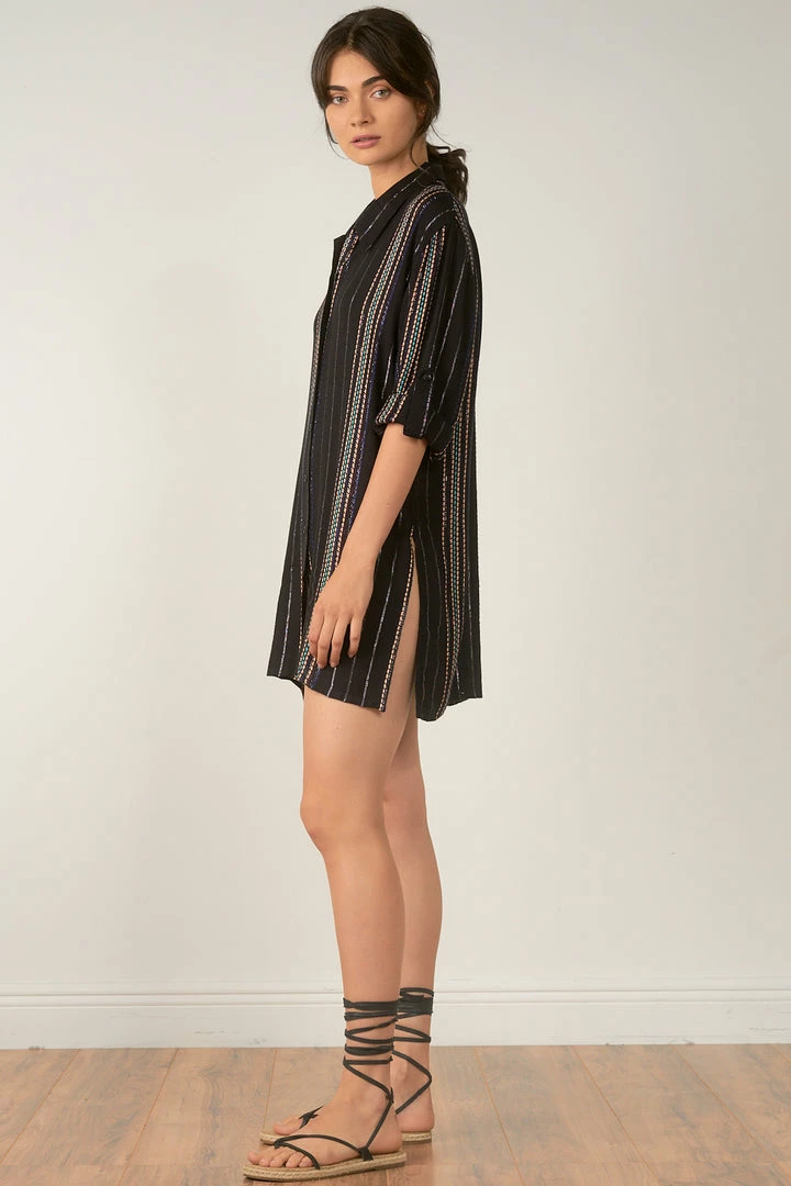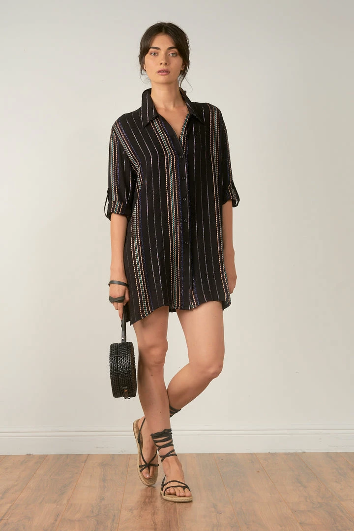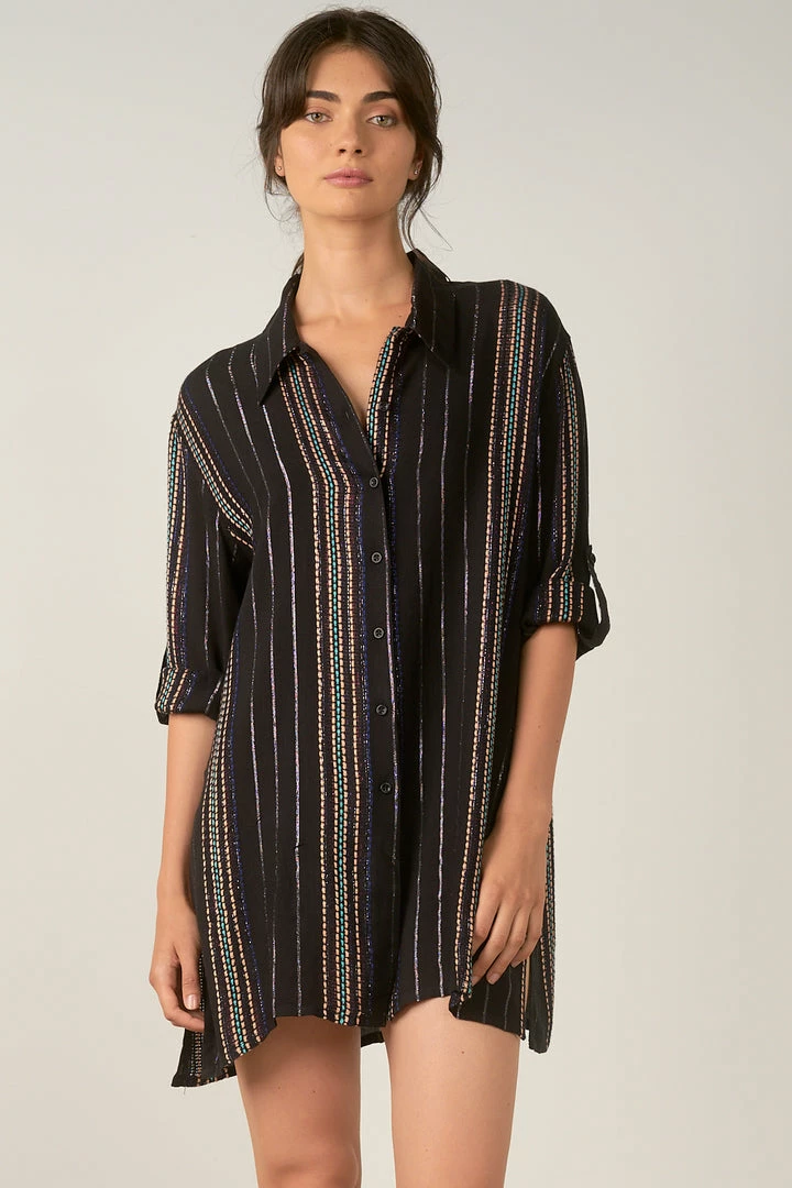 Who looks better than you? No one! This fabulous button down can be used as a beach cover up or to go out. Perfect to go from the beach to the Marina for lunch. Throw on over your bathing suit on pair a a wide leg trouser for a dressier look or even. Button down front with roll up sleeve holds.Â