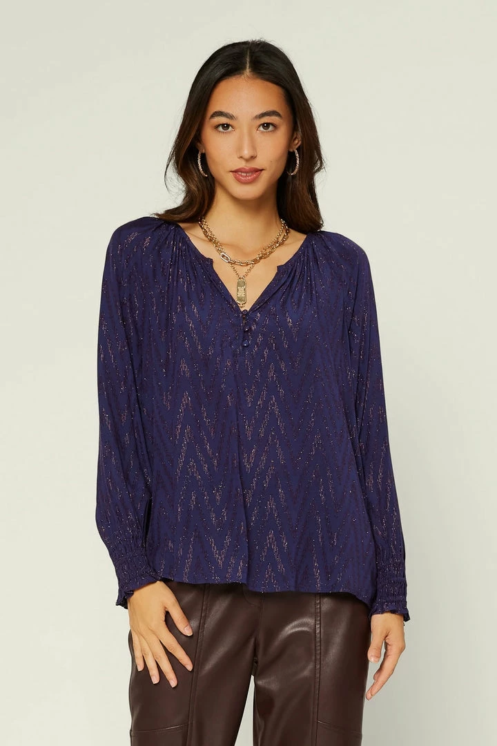 Olive & Bette’s Accessories Olive And Bette’s – Metallic Chevron L/S Top Blue Burgundy