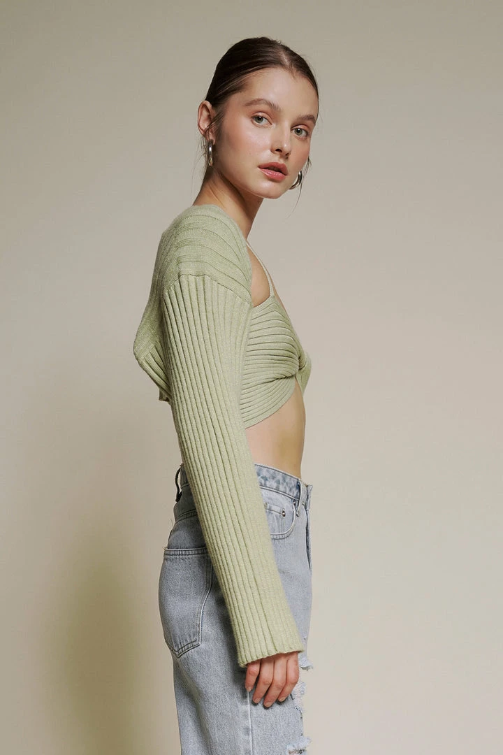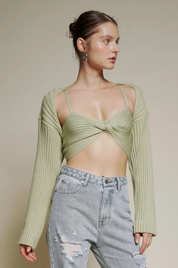 Olive & Bette’s Olive And Bette’s – Knit Crop Top With Shrug Sage Accessories