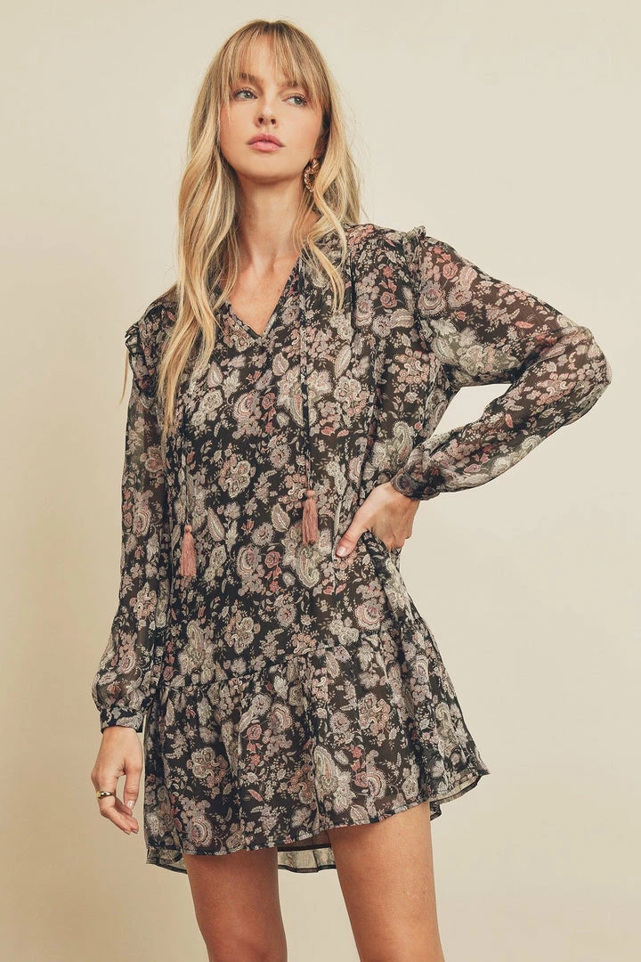 Olive & Bette’s Olive And Bette’s – Paisley Floral Ruffled Swing Dress – Black/Multi