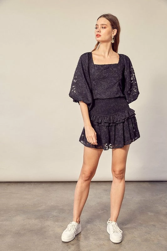 Olive & Bette’s Olive And Bette’s – Smocked Burnout Ruffle Skirt – Black Skirts