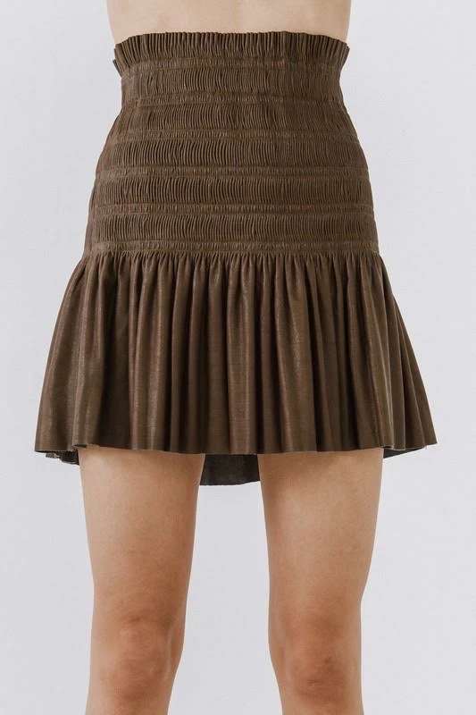Olive & Bette’s Olive And Bette’s – Smocked Pleated Leather Skirt – Brown Skirts
