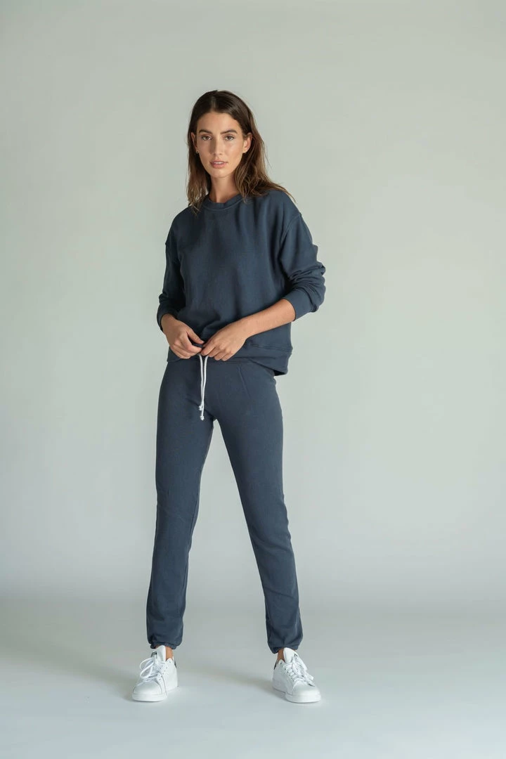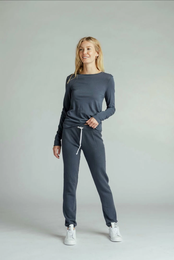 Admit it, we are all in our joggers these days and this one is a “must have.”  Basic straight fit, longer length, with an easy elastic waistband and natural drawcord. Designed to wear it rolled up if you’re on the petite side.