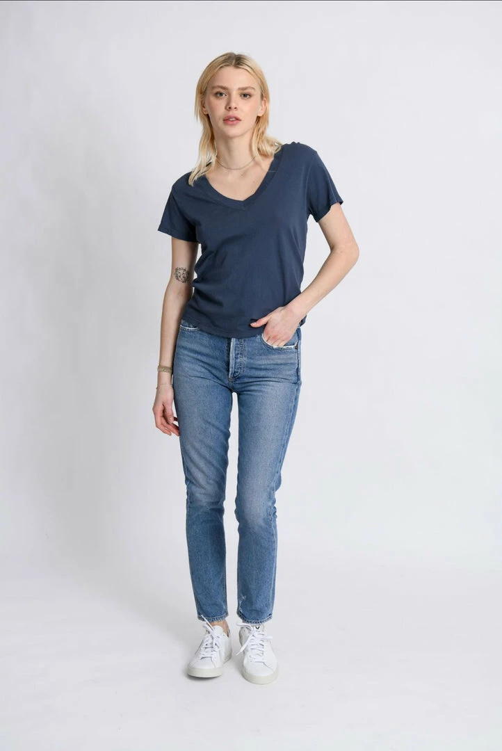 We created the perfect slightly oversized v-neck. Deep enough neckline… but not TOO deep.