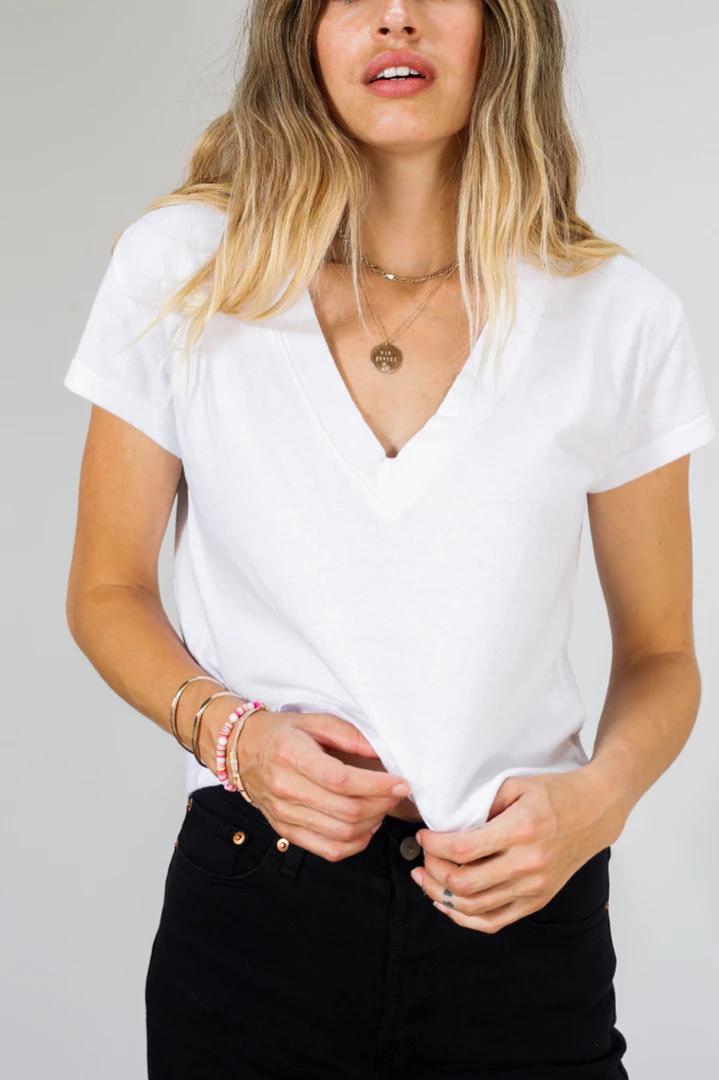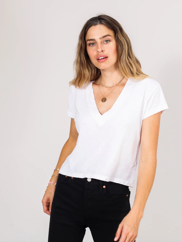 the perfect deep v neck. dress up for date night or dress down with denim.