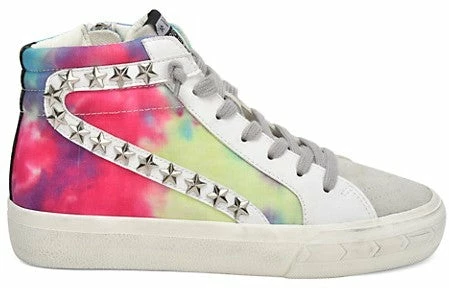 These adorable Tie dye hightops with silver star studs have all the perfect details to make your outfit complete . Â